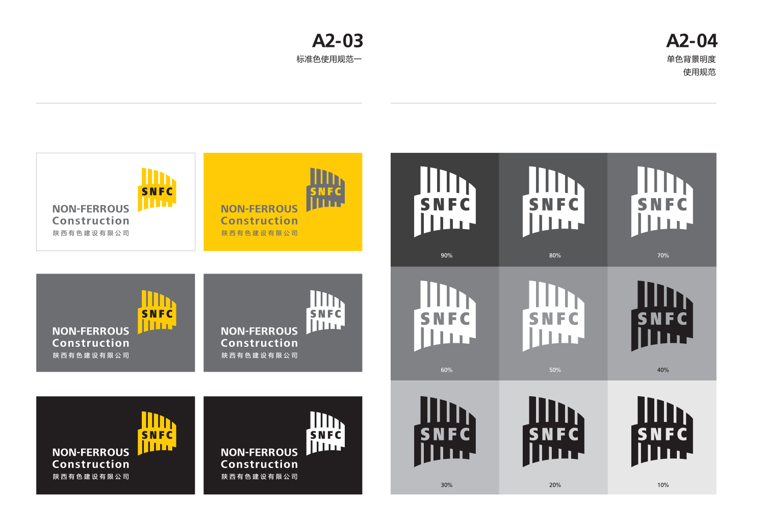 5、標識采用明快的黃色,與傳統建筑企業相區別,同時樹立起一個現代、高效、獨特的品牌形象,便于大眾的識別和記憶。