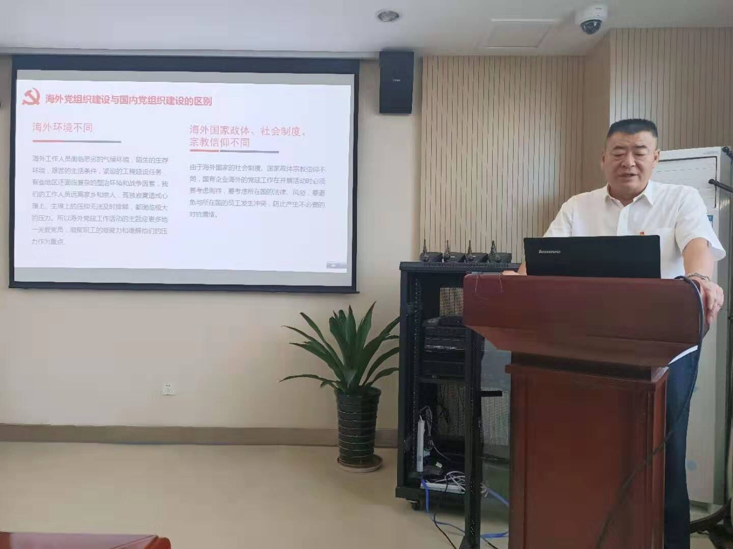 接下來,由黨委委員李七一同志以《關于海外基層黨組織建設工作的調研匯報》為題,從海外黨組織建設與國內黨組織建設的區別、如何做好海外基層黨建工作、加強海外基層黨建思想政治工作、創新活動,發揮黨員作用四個方面給支部全體黨員講授黨課。他指出海外市場前景廣闊,黨員同志要加強自身學習,提高自身專業水平的及語言學習應用水平,為公司開辟新市場,創造新的經濟增長點多做貢獻。