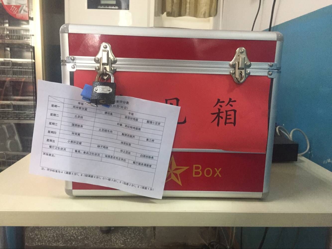 綜合辦公室精心設計了食堂滿意度調查表,置于食堂顯眼處,供就餐職工領取填寫。調查表主要針對食堂環境、餐具衛生、飯菜質量、花樣品種及食堂日常管理等,通過打分的方式,對于食堂工作的各個環節給予評價。要求大家真實、客觀地填寫問卷,并重點對菜的種類及口味提出意見和建議。