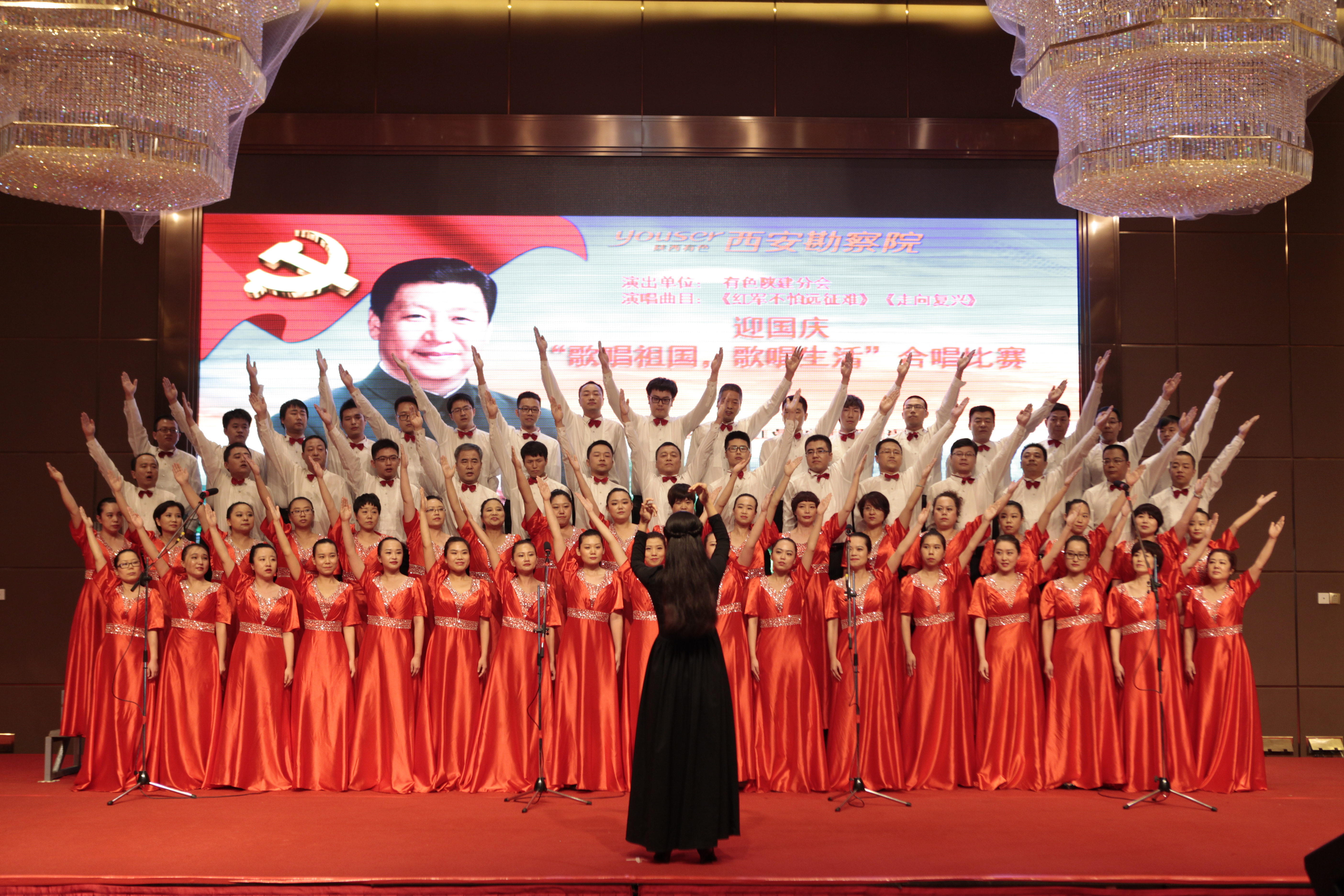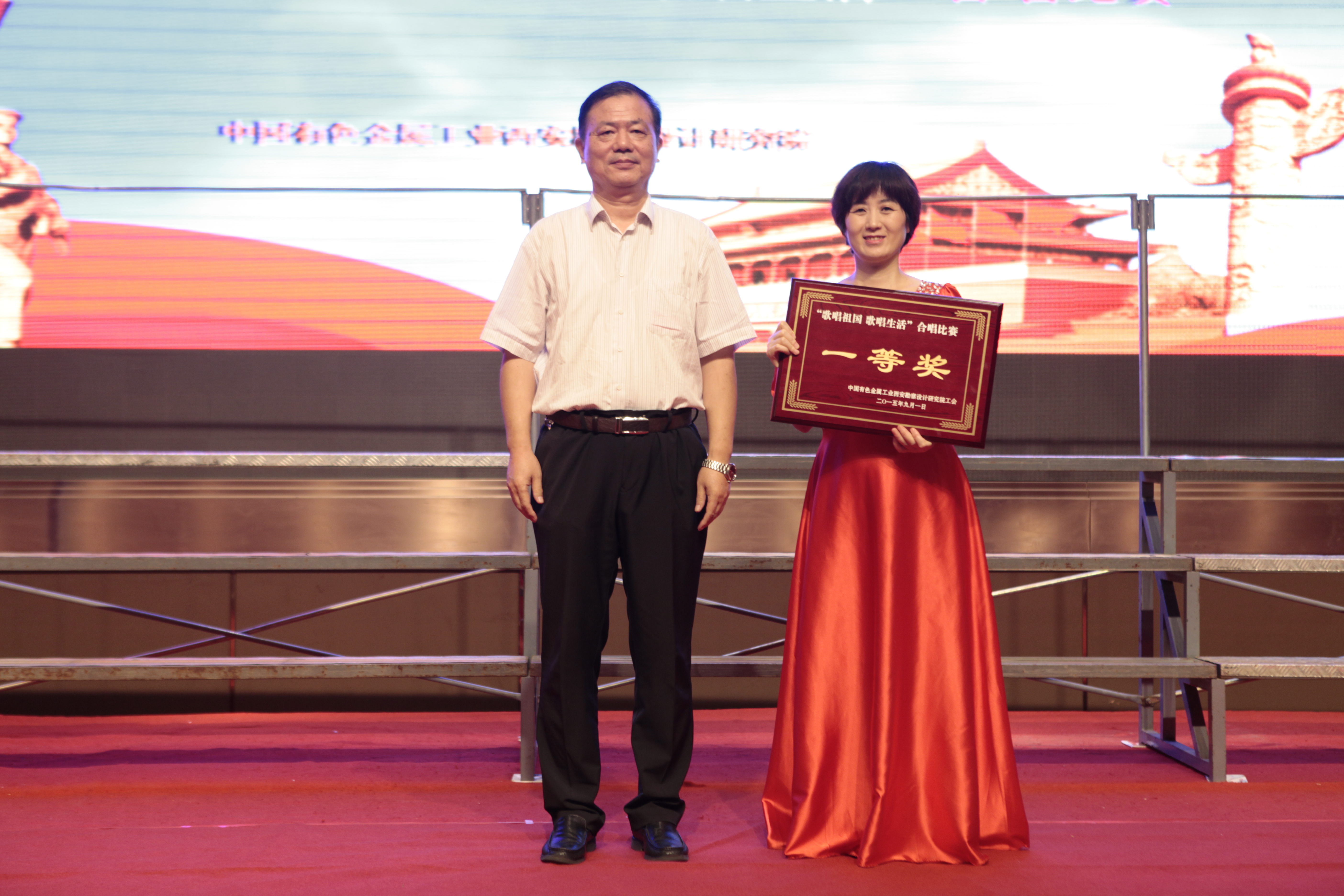 在曲江國際飯店的永寧大廳里,西勘院領導與500余名職工一同觀看了這次比賽。每個隊伍都準備充足,拿出最佳水平,向祖國抗戰勝利七十周年獻禮。我公司選擇了《紅軍不怕遠征難》和《走向復興》兩首歌曲,組織了有公司領導、職能部門負責人和員工60多人參加的合唱隊,經過一個多月的用心準備,大家克服了工作和排練時間上的沖突,聽從排練老師的指揮,每一次都有進步和收獲,最終贏得了比賽的勝利。