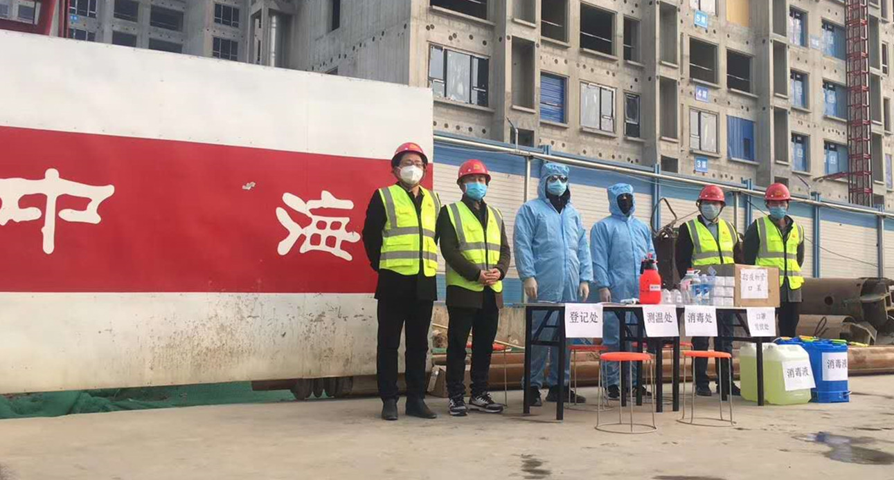 中海項目是公司調整戰略布局,全面展開自營項目建設,成立工程二部后承接的首個項目,是公司2020年重點項目,意義非凡。新年伊始,卻突遇疫情,為保證工程進度,公司上下高度重視,工程二部經理呂紅輝統籌安排,靠前指揮,多次召開線上會議,研究項目部防控防疫及復工復產工作;薛桂軍經理帶領管理人員根據質監站、甲方要求,制訂項目開工前的防疫措施,積極辦理復工前的各種手續,為項目部的全面復工復產做足準備。