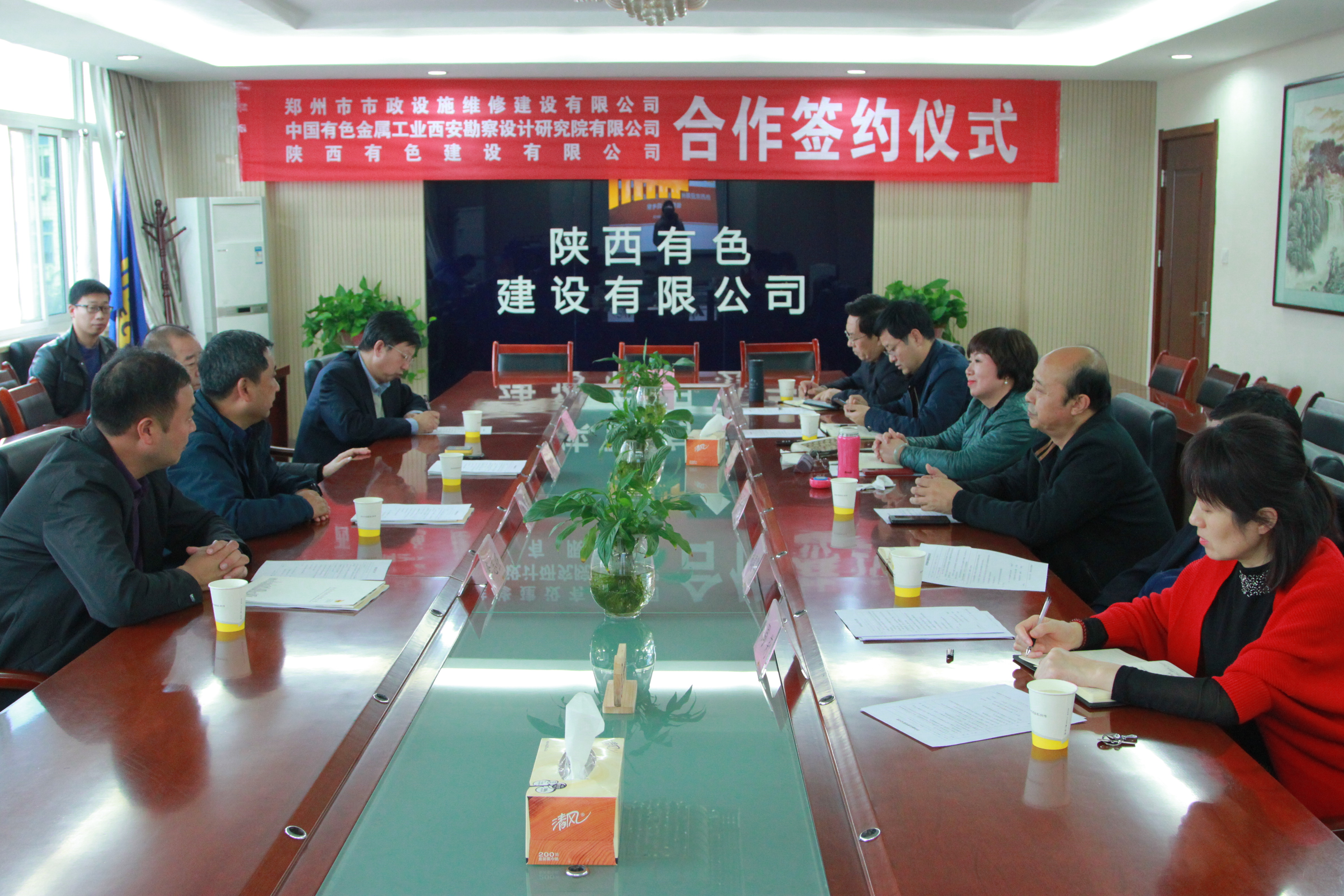 11月21日,我公司、有色西勘院有限公司與鄭州市市政設施維修建設有限公司(以下簡稱“鄭州市政公司”)在西安簽署合作協議。有色西勘院有限公司副總經理王軍成、有色陜建黨委書記、董事長盧曉嵐和鄭州市政公司董事長兼總經理楊智勇分別代表三方在合作協議上簽字。鄭州城基市政環保科技有限公司總經理李志強、有色西勘院有限公司經營部部長何軍、公司總工程師杜輝及相關職能部門負責人參加了此次合作協議簽約儀式。