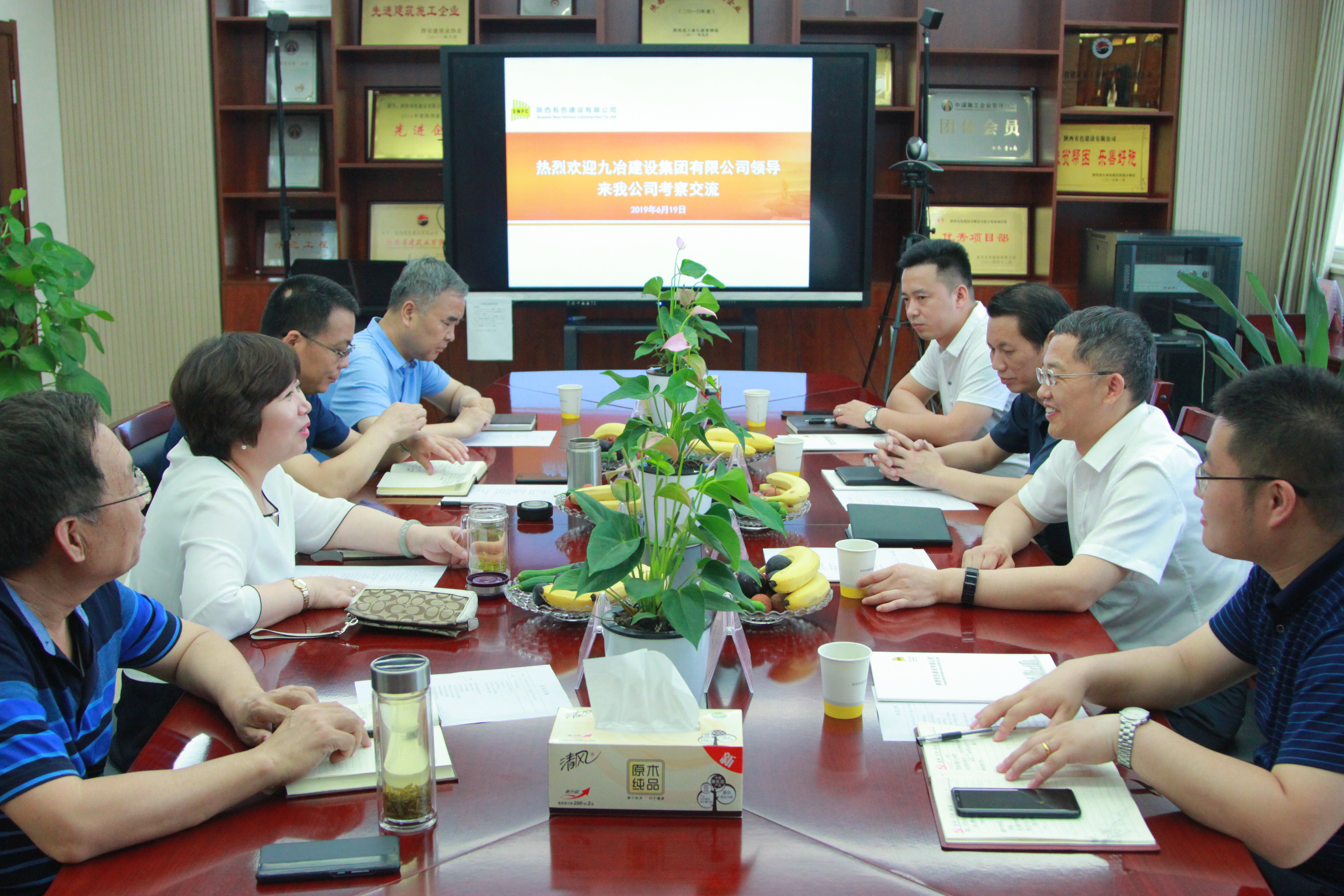 6月19日上午九冶建設有限公司總經理聶玉棟一行來我公司考察調研。雙方就開展戰略合作、推動項目實施進行了深入會談。