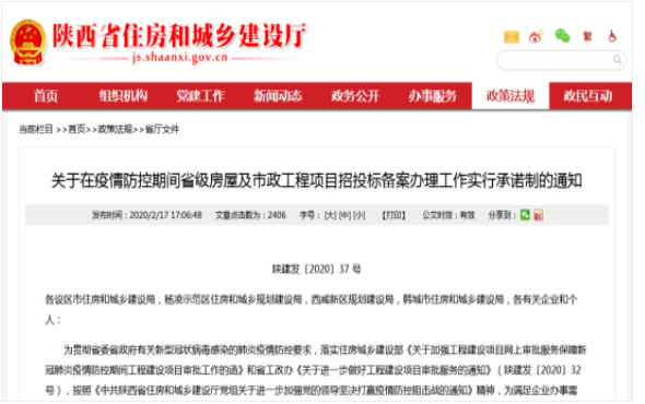 【疫情防控】疫情防控期間陜西省房屋及市政工程項目招投標備案實行承諾制
